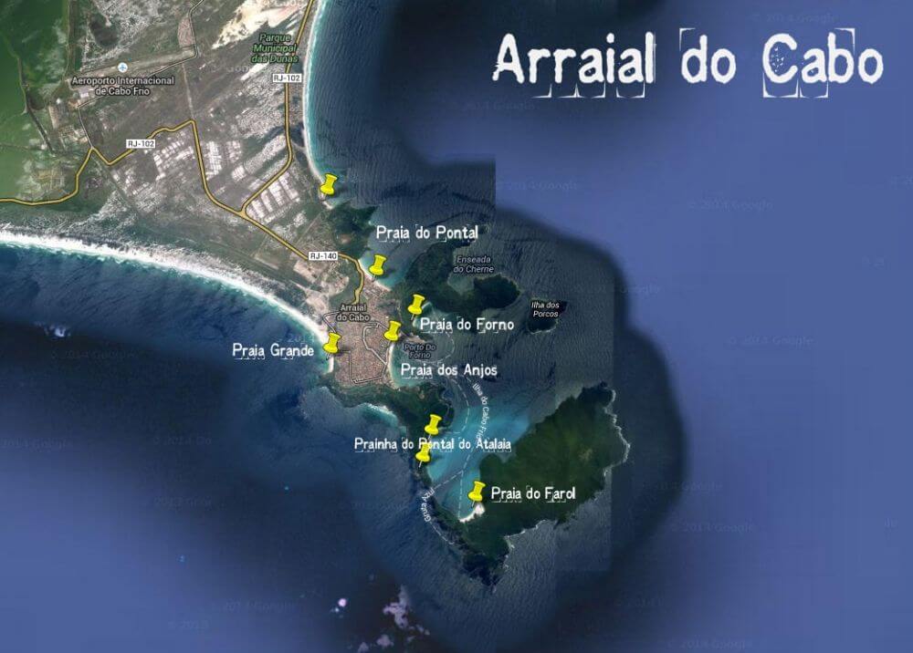 A cidade de Arraial do Cabo, como o nome indica é realmente um cabo, um pedaço de terra grande (superior ao pontal e ponta) adentrando ao mar, possui pequena diversidade de praias em enseadas, entre estas pode se considerar que estão algumas das praias mais belas do mundo. A cidade abriga o Porto do Forno, por onde entram produtos para a cidade e saem as produções de sal. Ideal para a prática de mergulho, o ecoturismo é a base da economia cabista, não aproveitando-se a região para o desenvolvimento de aquacultura e maricultura.